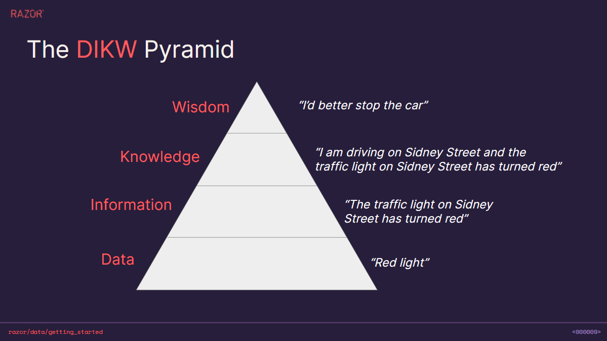 The DIKW Pyramid shows you how you can move from data (D) to information (i), knowledge (K) and then wisdom (W). Wisdom gives you the insight to take action.